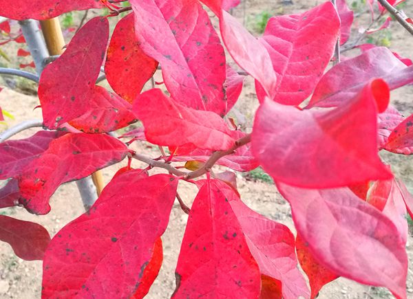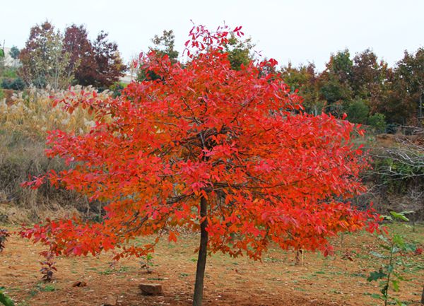 ■形態(tài)特征:落葉大喬木,高達(dá)15米,胸徑達(dá)0.9米,冠幅可達(dá)12米。樹(shù)形在成年以前為塔狀,之后漸變?yōu)闄E圓形。葉全緣、厚、橢圓形,長(zhǎng)5-13厘米,寬3-7厘米,上面亮綠色,背面灰綠色具毛,秋季猩紅色,鮮艷?;ㄔ谌~基部,綠色,早春開(kāi)放,常雌雄異株。