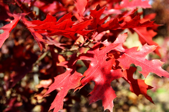 作為落葉闊葉大型喬木,紅橡樹(shù)形圓形到圓錐形,樹(shù)高可達(dá)30米,樹(shù)徑可達(dá)91厘米,冠幅可達(dá)22米。樹(shù)皮光滑細(xì)膩,呈灰綠色。波狀葉,葉片7-11裂,長(zhǎng)11.5-21.3厘米,寬10-15厘米,互生。新葉櫟紅色,夏季葉片綠色有光澤,秋季葉色由深綠色逐漸變?yōu)榛鸺t色、亮紅色至紅褐色。充足的陽(yáng)光可使秋季葉色更加鮮亮,是很好的觀賞性樹(shù)種。
