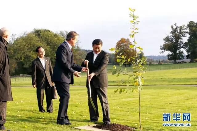 2015年10月22日,國家主席習近平在契克斯首相鄉(xiāng)間別墅同英國首相卡梅倫再次會晤。兩國領導人一同在別墅草坪,共同種下象征中英友誼的橡樹。
