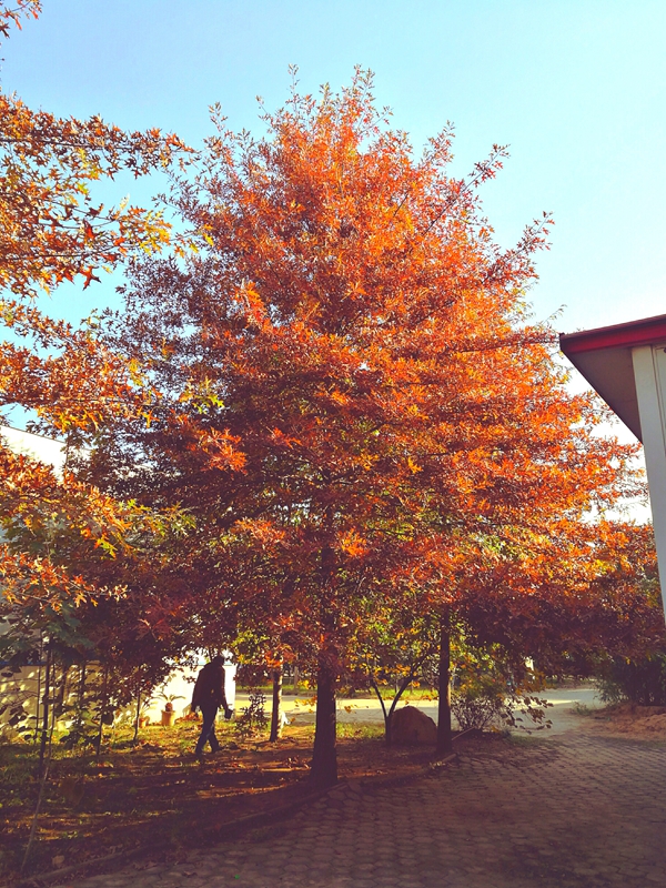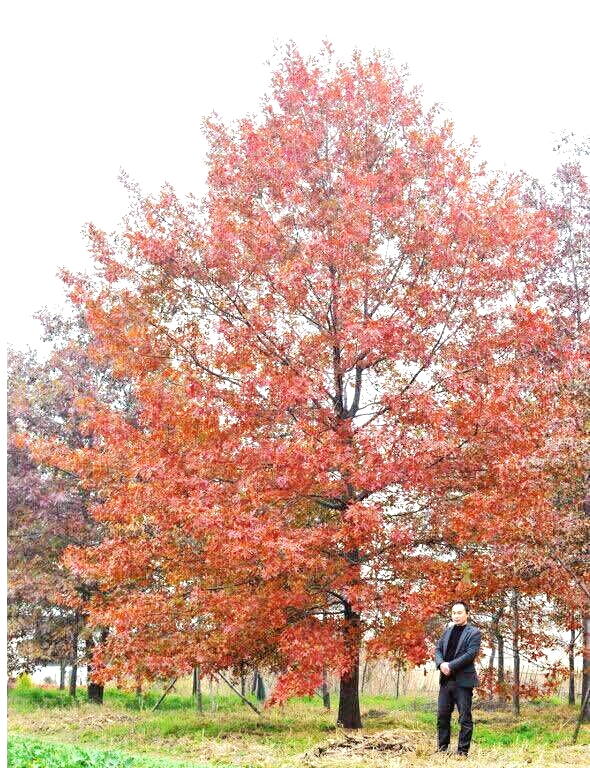 沼生櫟樹干通直,枝條分布均勻且層次分明、葉片革質(zhì)繁茂成標(biāo)準(zhǔn)的金字塔狀,遠(yuǎn)遠(yuǎn)望去就像一把大綠傘,遮陰效果特別好。直徑20厘米的大樹冠幅可達(dá)8-10米,非常適合公園、小區(qū)、單位和林蔭停車場(chǎng)綠化應(yīng)用。秋季來(lái)臨樹葉由綠變紅,整個(gè)樹冠火紅一片,美倫美煥,美不勝收,是不可多得的優(yōu)秀彩色樹種。