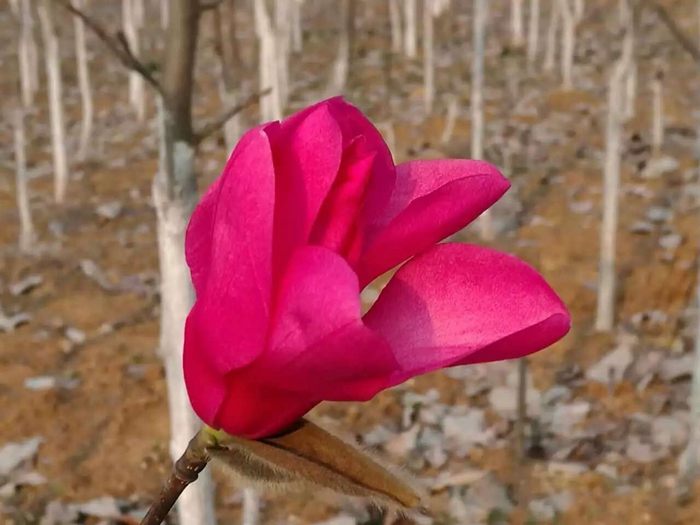 該品種為北京林業(yè)大學馬履一教授等人2004年發(fā)現(xiàn)的花瓣內外全紅的木蘭科植物新品種。由國家林業(yè)局植物新品種保護辦公室授權保護,由湖北眾森生態(tài)林業(yè)股份有限公司負責市場運作。我公司于2015年引進該品種在山東進行種植實驗并推廣,為日照地區(qū)唯一授權加盟商。